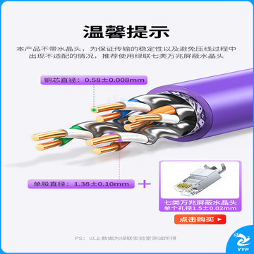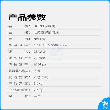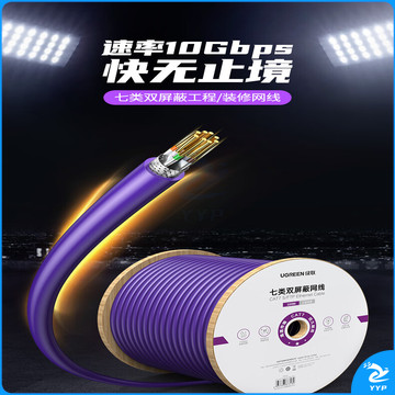 绿联(UGREEN) 七类万兆双屏蔽网线【0.58±0.008mm纯铜线芯】CAT7类双绞 POE监控工程家装布线网络箱线 100米
