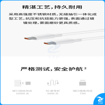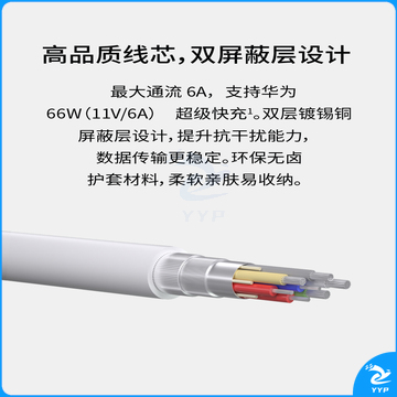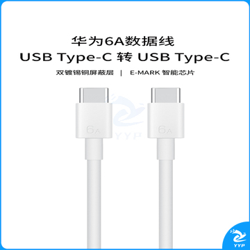 华为6A数据线 USB Type-C转USB Type-C 线长1m/高品质线芯/持久耐用 白色