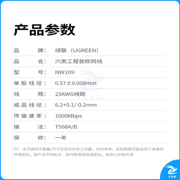 绿联(UGREEN)六类网线千兆【0.57±0.008mm纯铜线芯】CAT6类非屏蔽双绞线 家装网线POE监控装修布线工程箱线50米