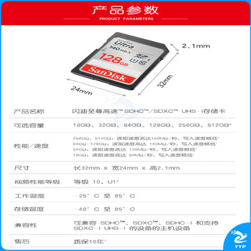 闪迪(SanDisk)128GB SD内存卡 U1 C10 至尊高速存储卡 读速140MB/s 全高清视频 数码相机理想伴侣