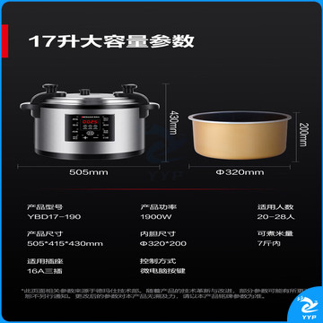 德玛仕商用电压力锅 电高压锅大容量17L升多功能单位企业食堂饭店高压力电饭煲锅20-28人用YBD17-190