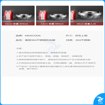 美厨(maxcook)304不锈钢碗12CM 汤碗餐具面碗 双层隔热 MCWA-094