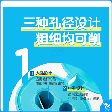 得力(deli)学生三孔密封门卷笔刀开学文具大口径转笔刀铅芯研磨器粗杆三角削笔刀(混色随机发)单支装