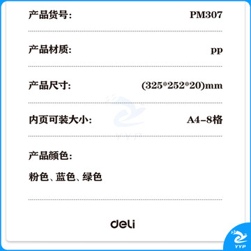 得力(deli)A4/8格便携风琴包 文件资料手提包 文件框资料册收纳夹 试卷票据资料收纳册 文件保护 混色PM307