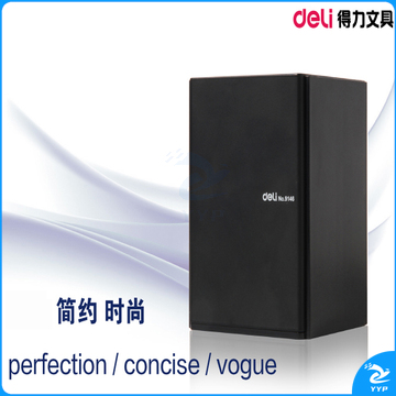 得力(deli)金属钢制桌面笔筒 商务办公收纳盒 黑色9146