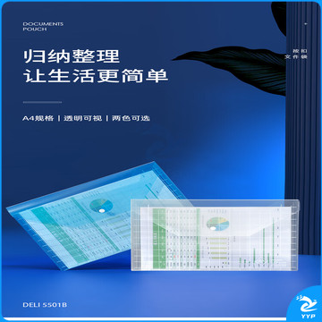 得力(deli)10只A4按扣学生桌面透明文件袋 试卷收纳 学科分类 塑料防水档案袋 蓝色5501B