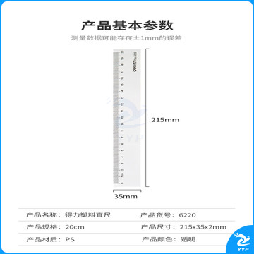 得力(deli)20cm办公通用直尺 考研高考中考测量绘图尺子 办公用品 6220开学文具礼物
