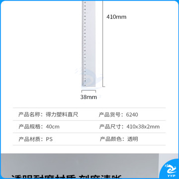 得力(deli)40cm办公学习通用尺子 考研高考中考考试塑料直尺 6240