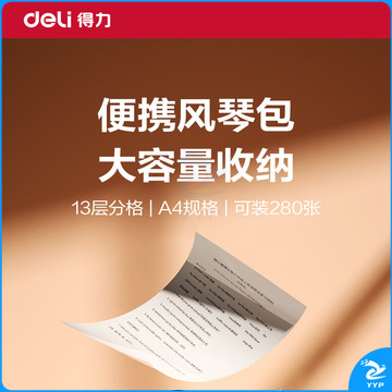 得力(deli)13格A4透明文件夹资料册 绑带风琴包 试卷收纳袋 大容量多层收纳 学生试卷册 PM310-13