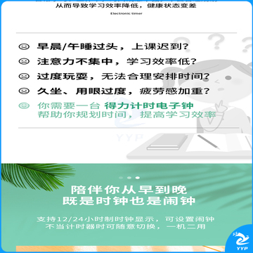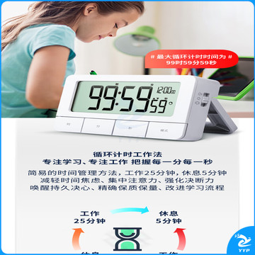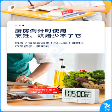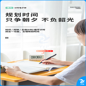 得力(deli)闹钟计时器多功能学生学习刷题厨房烹饪时间管理神器白色 8841