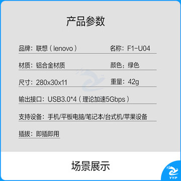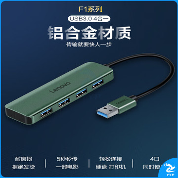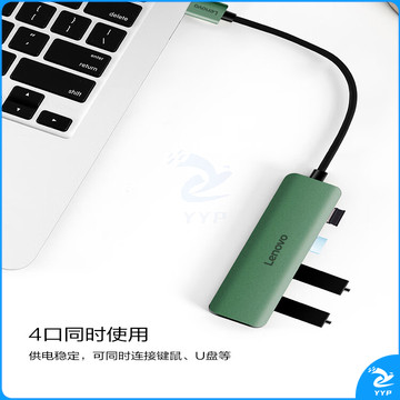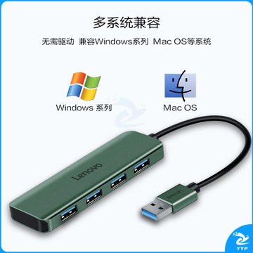 联想(Lenovo)USB3.0分线器4口高速扩展坞笔记本电脑延长线拓展坞转换器小新拯救者转换头通用 绿色