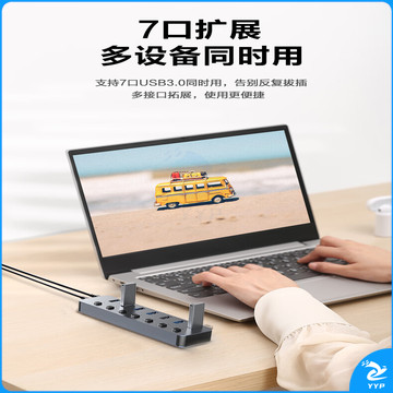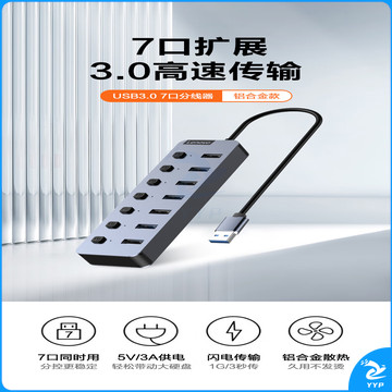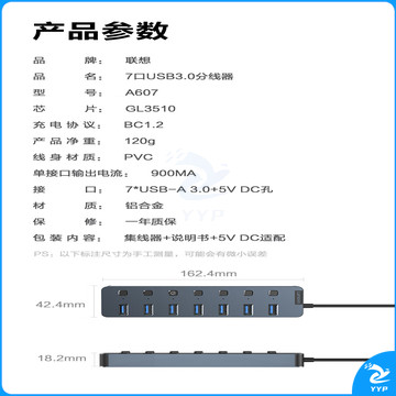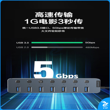 联想(Lenovo)铝合金七合一USB3.0分线器扩展坞 笔记本电脑接硬盘键鼠集线器HUB延长线拓展坞
