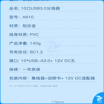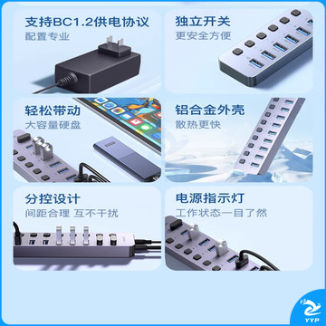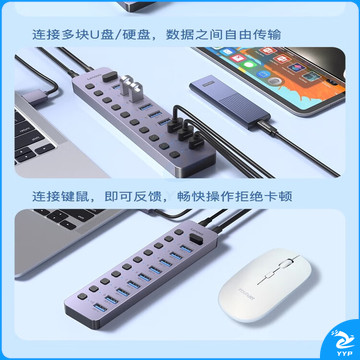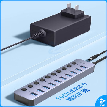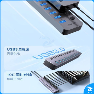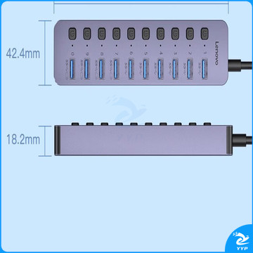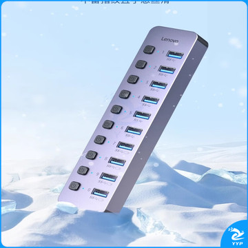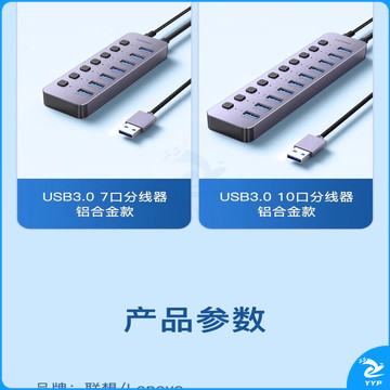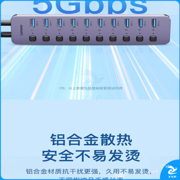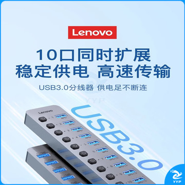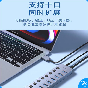 联想(Lenovo)USB3.0分线器铝合金十合一扩展坞 笔记本电脑接硬盘键鼠集线器HUB延长线拓展坞