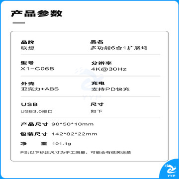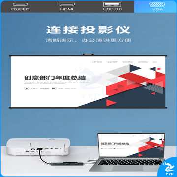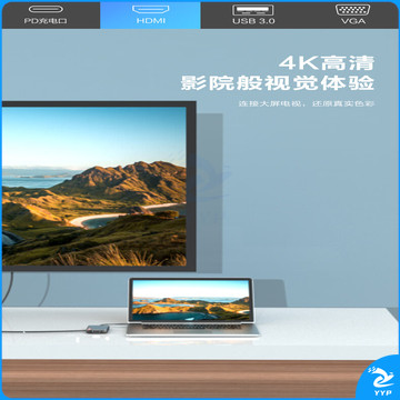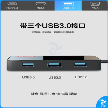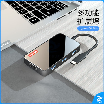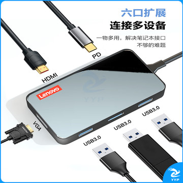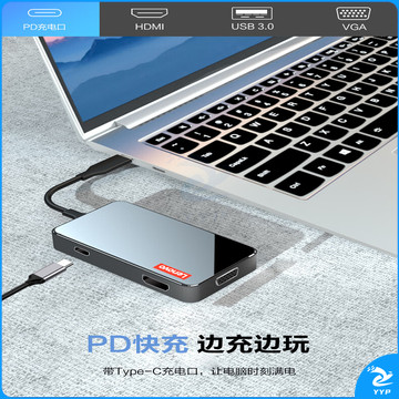 联想(Lenovo)Type-C扩展坞USB分线器USB转换器HDMI转接VGA转接拓展坞4K投屏扩展PD快充适用手机平板电脑