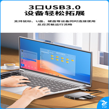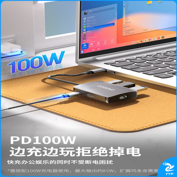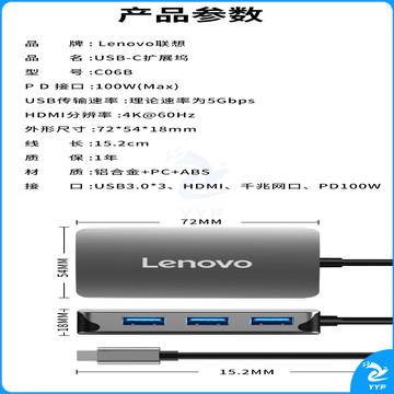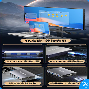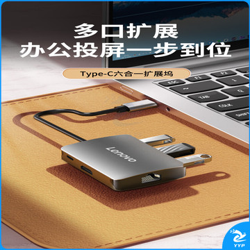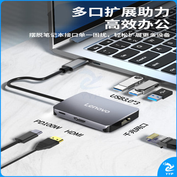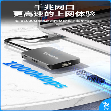 联想(Lenovo)Type-C扩展坞USB分线器转换HDMI转接拓展坞4K 60HZ投屏PD快充千兆网口苹果手机平板电脑通用
