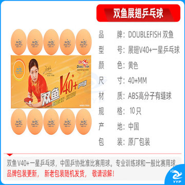 双鱼乒乓球一星 1星兵乓球训练用球 展翅V40+ 黄色10个装