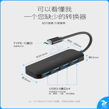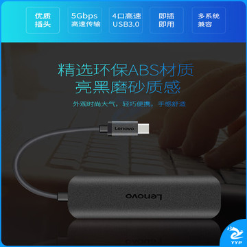 联想(Lenovo)Type-C拓展坞扩展坞转USB3.0高速转接器四合一USB-CHub集线器转换头适用笔记本电脑华为小新