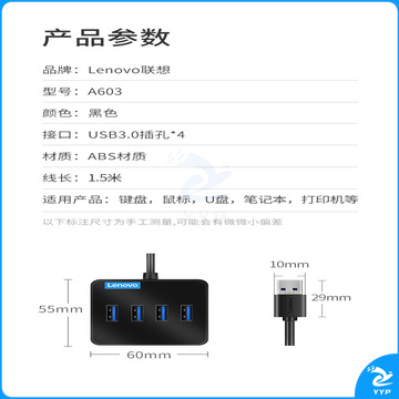 联想(Lenovo)USB分线器3.0接口转换器四合一扩展坞转接头HUB集线器USB延长线笔记本/台式机转换器