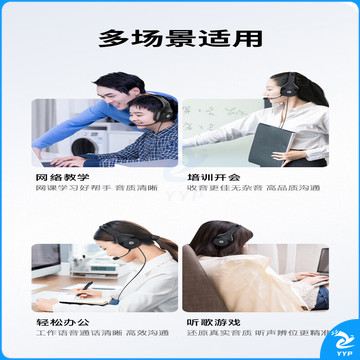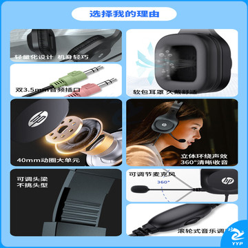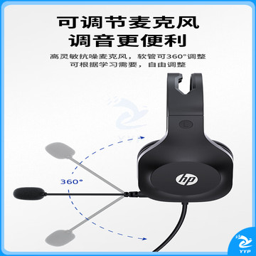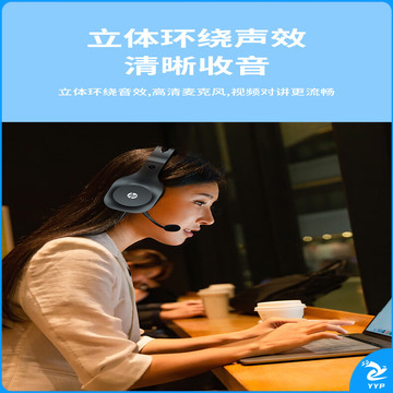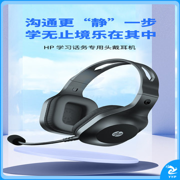 惠普DHH-1601耳机头戴式电脑游戏语音听力学生二合一网课办公教育培训学习有线话务耳麦2米线长升级款