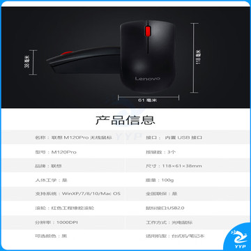 联想(Lenovo)办公鼠标M120Pro大红点台式机鼠标笔记本台式机鼠标 有线经典大红点