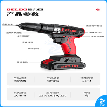 德力西(DELIXI)手电钻锂电钻电动螺丝刀家用充电式手钻电起子电批电动工具箱套装