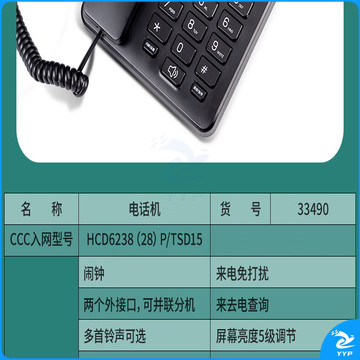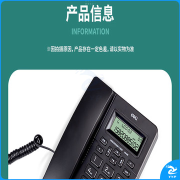 得力(deli)电话机座机 固定电话 办公家用 免提通话 大字按键 来电显示 33490黑