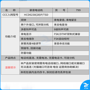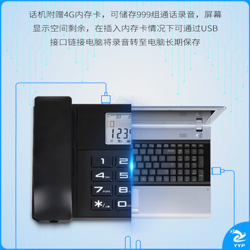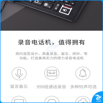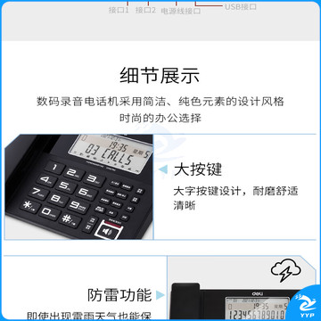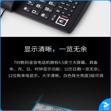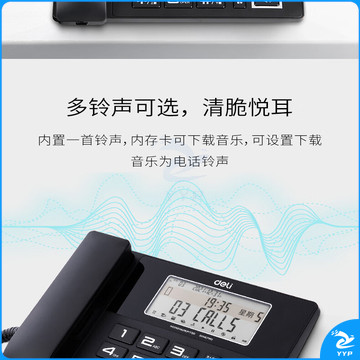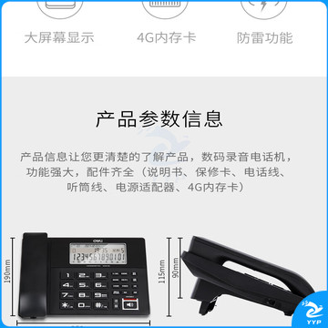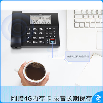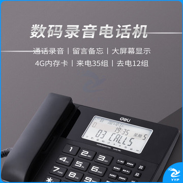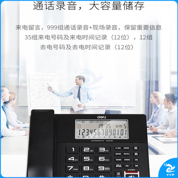 得力(deli)录音电话机 固定座机 办公家用 来电显示 4G内存卡 799 黑