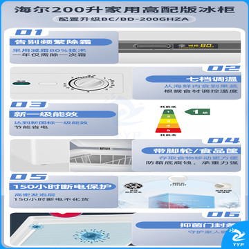海尔(Haier)冰柜家用小型200升商用大容量减霜80%无需频繁除霜一级能效节能省电冷冻速冻冷柜