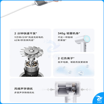 米家高速吹风机H501 温柔小飓风 负离子护发 云漫白