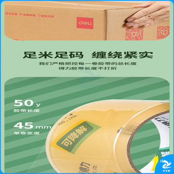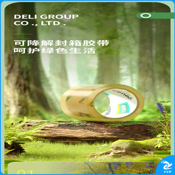 得力(deli)纤维素膜封箱胶带 绿色环保 可降解 包装材料 易撕 打包胶带 45mm*50y*50μm 1卷装 30292