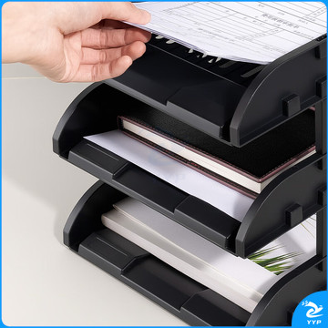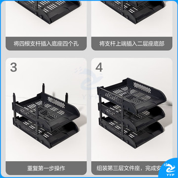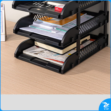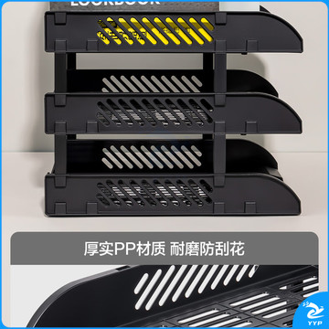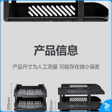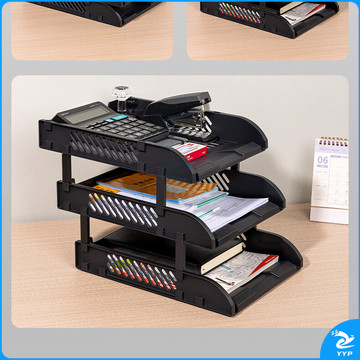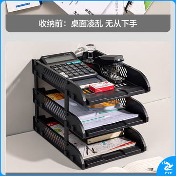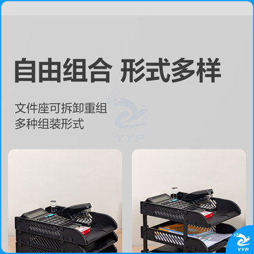 得力(deli)三层镂空收纳文件座自由拆卸组装三层文件盘/文件框栏牢固耐用桌面档案收纳盒文件置物架管理 黑色