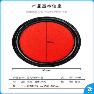 得力(deli)φ95mm圆形塑壳快干印台印泥 财务办公用品 红色9870(新老混发)