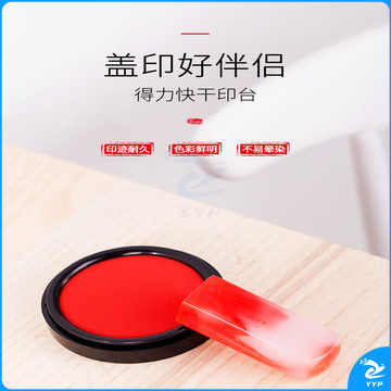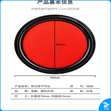 得力(deli)φ70mm圆形塑壳快干印台印泥 财务办公用品 红色9868(新老混发)