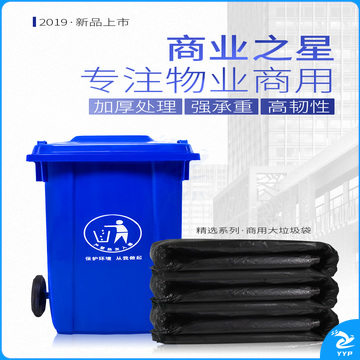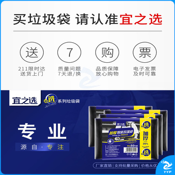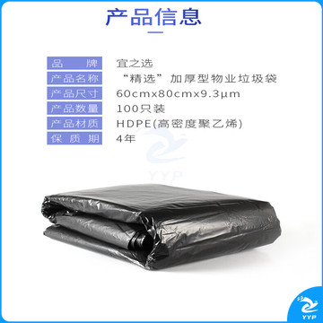 宜之选大号垃圾袋60x80cm*100只加厚平口商用物业酒店特大塑料袋
