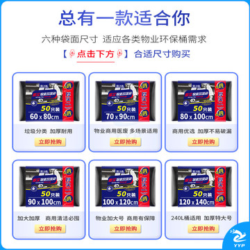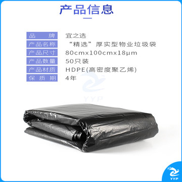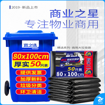 宜之选厚实大垃圾袋80*100cm*50只物业环卫商用大号黑色酒店清洁塑料袋