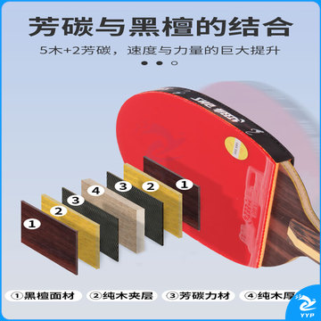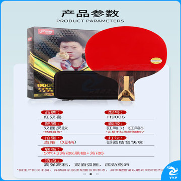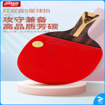 红双喜DHS狂飚九星乒乓球拍直拍黑檀面材+芳碳H9006赠球