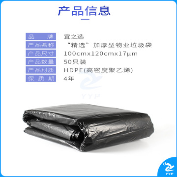 宜之选超大号垃圾袋100*120cm*50只加厚平口商用物业酒店特大塑料袋
