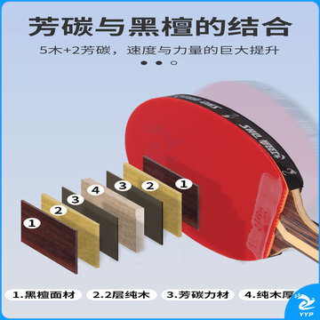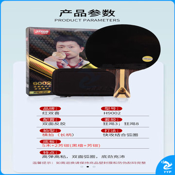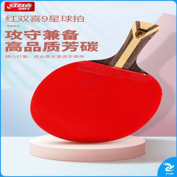 红双喜DHS狂飚九星乒乓球拍横拍专业比赛黑檀芳碳H9002赠球