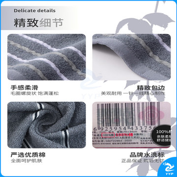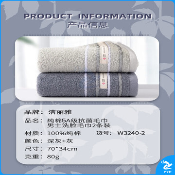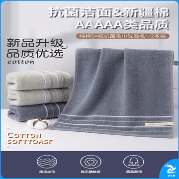 洁丽雅(Grace)纯棉5A级抗菌毛巾男士洗脸毛巾2条装柔软吸水洗澡擦脸巾