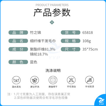 竹之锦 毛巾 速干洗脸巾成人吸水 家用干发巾柔软1条蓝色 35*75cm 105g