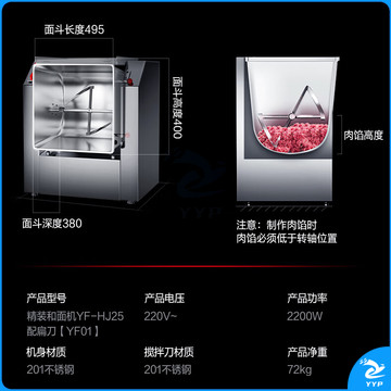 德玛仕(DEMASHI)商用和面机自动多功能大容量揉面搅面厨师搅拌机搅馅活面机YF-HJ25(扁刀和面搅馅 25L)