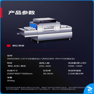 德玛仕 商用洗碗机长龙洗碗机全自动化大型酒店食堂饭店大容量清洗刷碗机DMS2300-LX1Y1(1主洗+1漂洗)