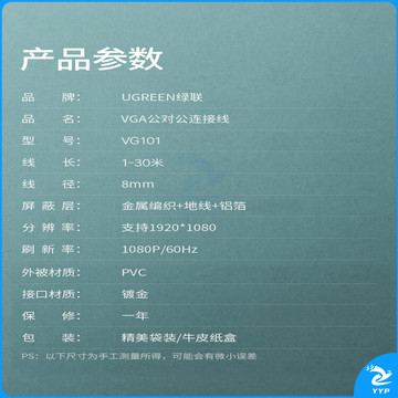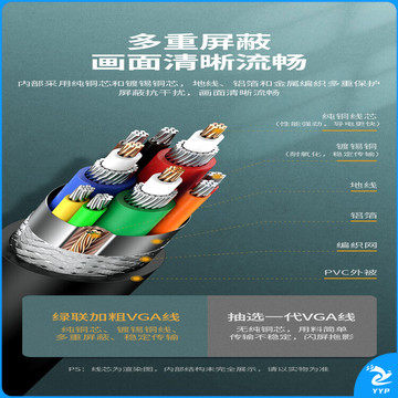 绿联(UGREEN)工程级VGA线高清视频数据转接线台式机笔记本电脑接显示器投影仪电视信号连接线3+6铜芯1.5米11630