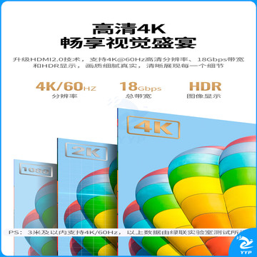 绿联(UGREEN)HDMI线2.0版 4K数字高清线3米 3D视频线工程级笔记本电脑机顶盒连接电视投影仪显示器数据连接线