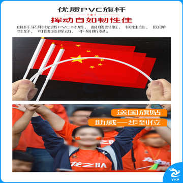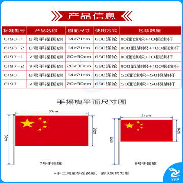 优和(UHOO)6198 国庆手持小国旗手摇旗小红旗手摇国旗小五星红旗小旗子带杆小旗杆 8号小国旗(50面+50杆)
