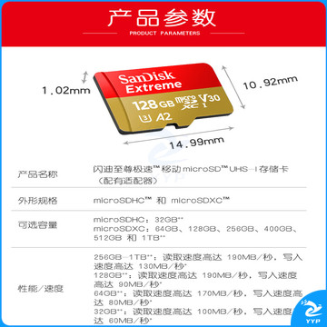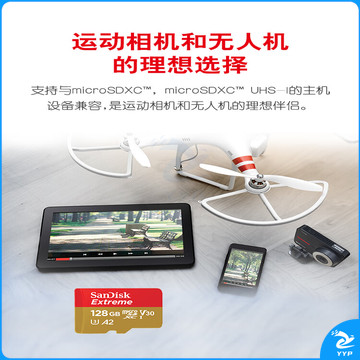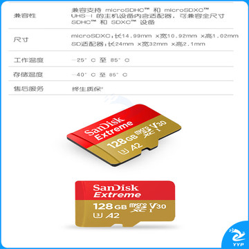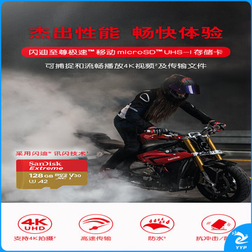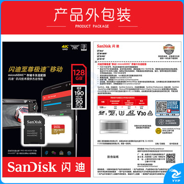 闪迪(SanDisk)128GB TF内存卡 4K高清 A2 V30 U3 至尊极速存储卡 兼容运动相机无人机 读速190MB/s 写速90MB/s