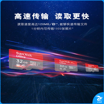闪迪(SanDisk)32GB TF(MicroSD)内存卡A1 U1 C10 至尊高速移动版存储卡 读速120MB/s 手机平板游戏机内存卡