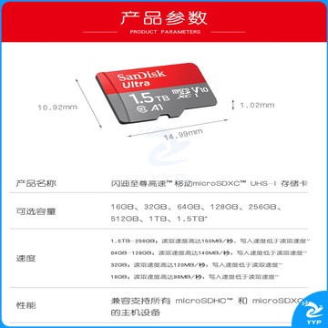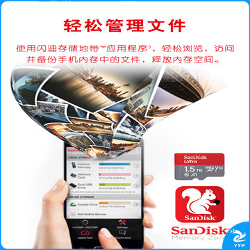 闪迪(SanDisk)1.5TB TF(MicroSD)内存卡 A1 U1 C10 至尊高速移动版存储卡 读速150MB/s 手机平板游戏机内存卡