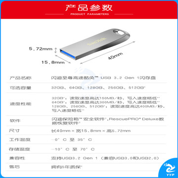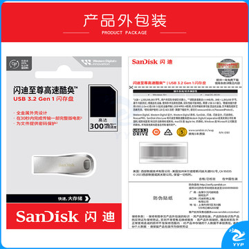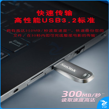 闪迪(SanDisk)64GB USB3.2 U盘 CZ74 读速高达300MB/s 金属高速u盘 安全加密 学习办公投标大容量优盘