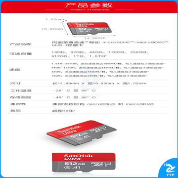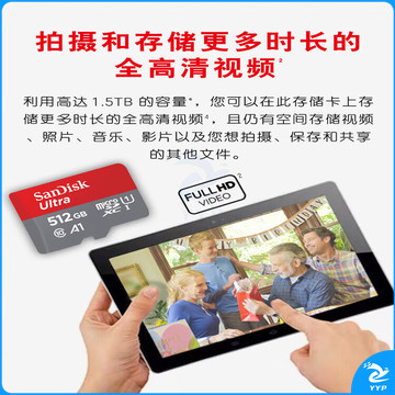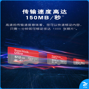 闪迪(SanDisk)512GB TF(MicroSD)内存卡 A1 U1 C10 至尊高速移动版存储卡 读速150MB/s 手机平板游戏机内存卡